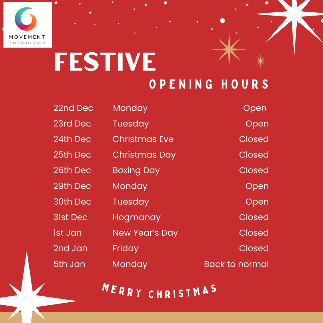 As we move in to the festive season our updated hours of service are listed opposite for the Christmas and New Year period.